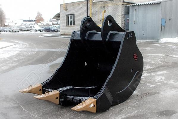 Ripping bucket RB-20.5.11 - used to excavate heavy ground with big amount of stony inclusions excavation and abrasive material (sandstone, granite, basalt, diabase, etc.), bulk material and loose rock and frozen soil handling with density up to 2200 kgs/m3. Different protection elements are applied to the bucket (wear plates, protectors, lip and corner shrouds, etc) made of wear resistant materials.