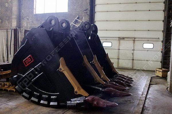 Ripping bucket RB-30.5.14 - used to excavate heavy ground with big amount of stony inclusions excavation and abrasive material (sandstone, granite, basalt, diabase, etc.), bulk material and loose rock and frozen soil handling with density up to 2200 kgs/m3. Different protection elements are applied to the bucket (wear plates, protectors, lip and corner shrouds, etc) made of wear resistant materials.